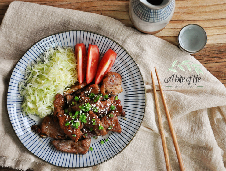 22姜烧猪肉,这是之前在日剧《深夜食堂》里看到的一道下饭菜。 满布“雪花”的新鲜猪肉煎香后以调味姜汁微煮,再配上爽口的切丝卷心菜、酸甜多汁的番茄,还有那一晚热气腾腾的白米饭,一个人用餐也照样愉快!
